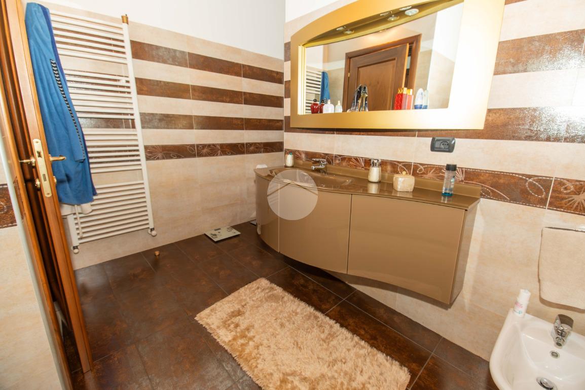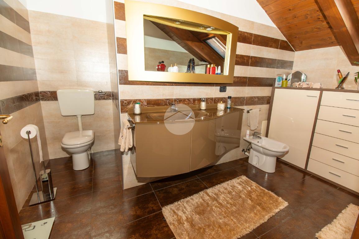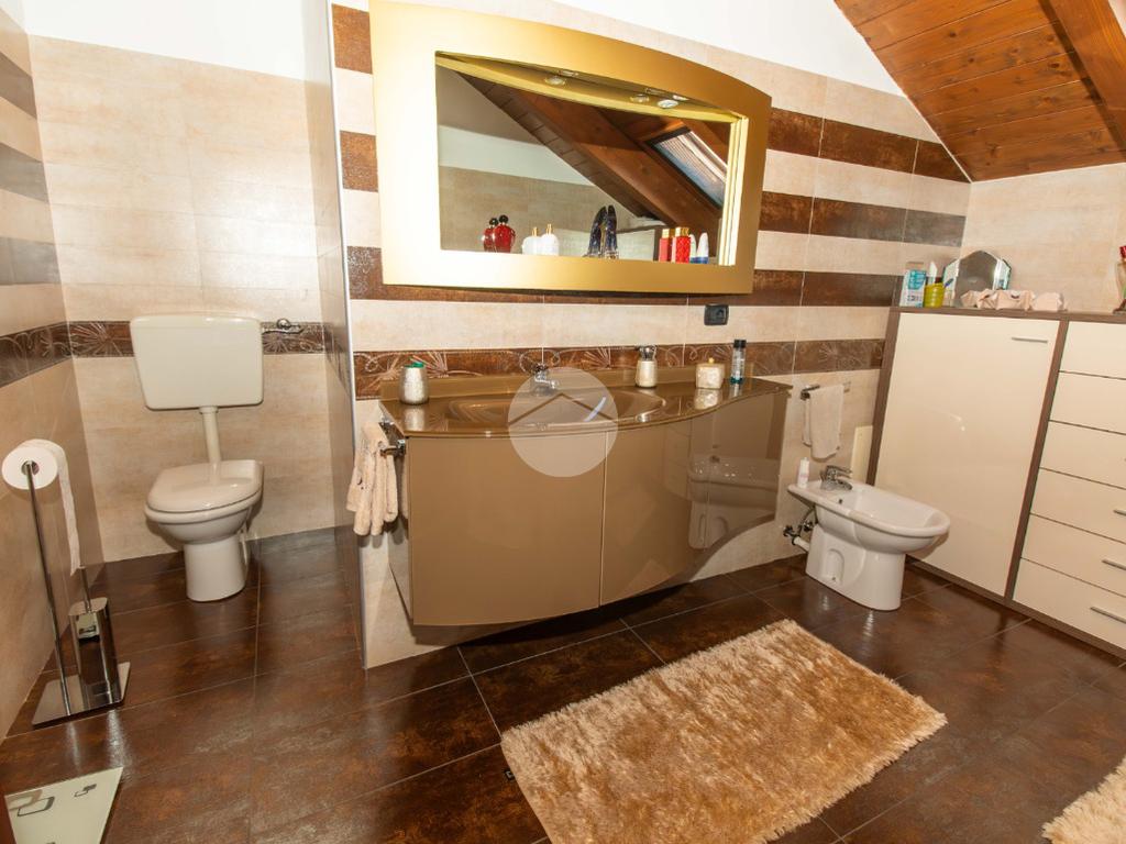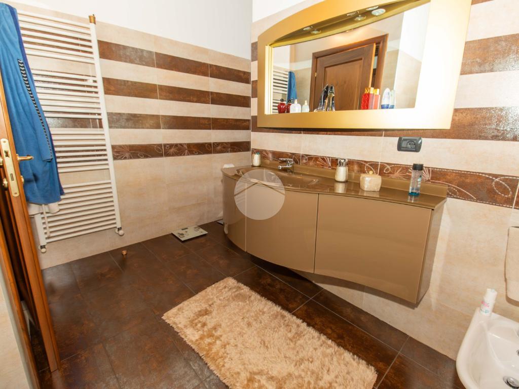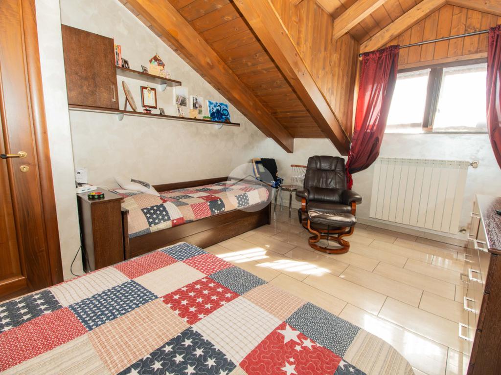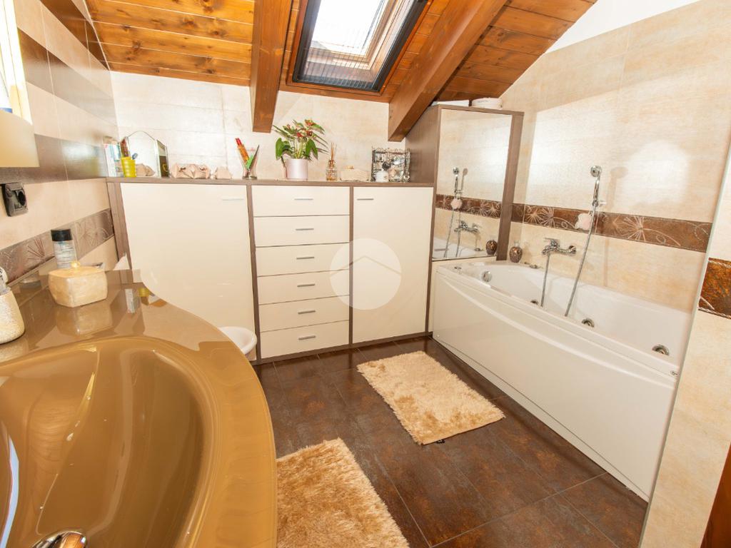 Dal soggiorno tramite comoda scala interna si ha accesso al piano superiore, in cui vi sono due ampie camere da letto, entrambe illuminate da infissi in vetrocamera in legno; e il bagno padronale, anch'esso finestrato e caratterizzato da vasca idromassaggio.