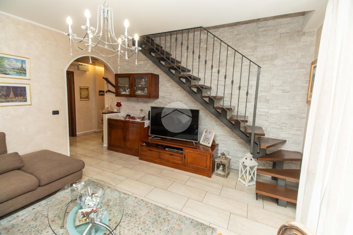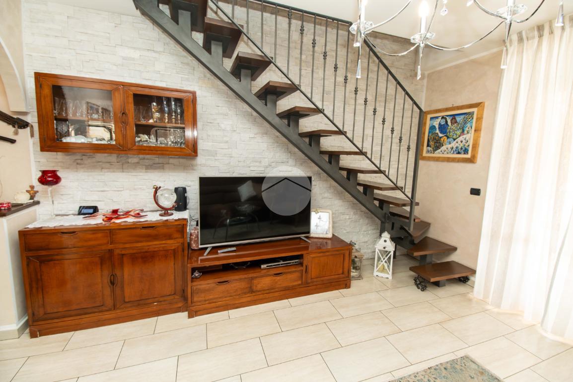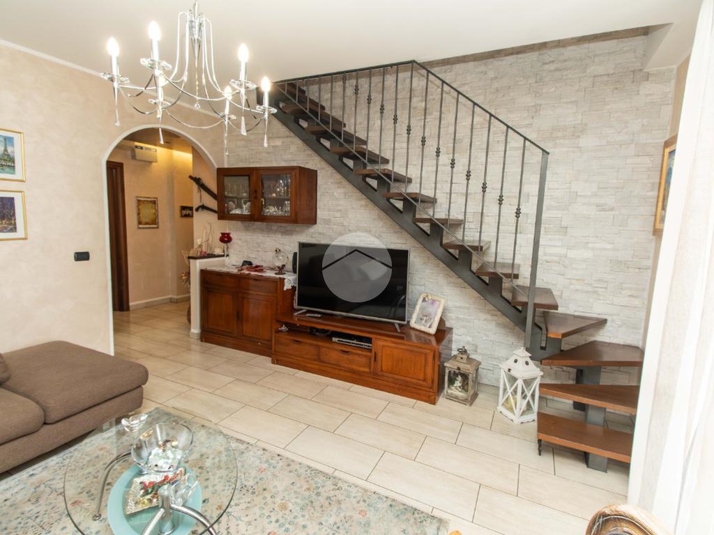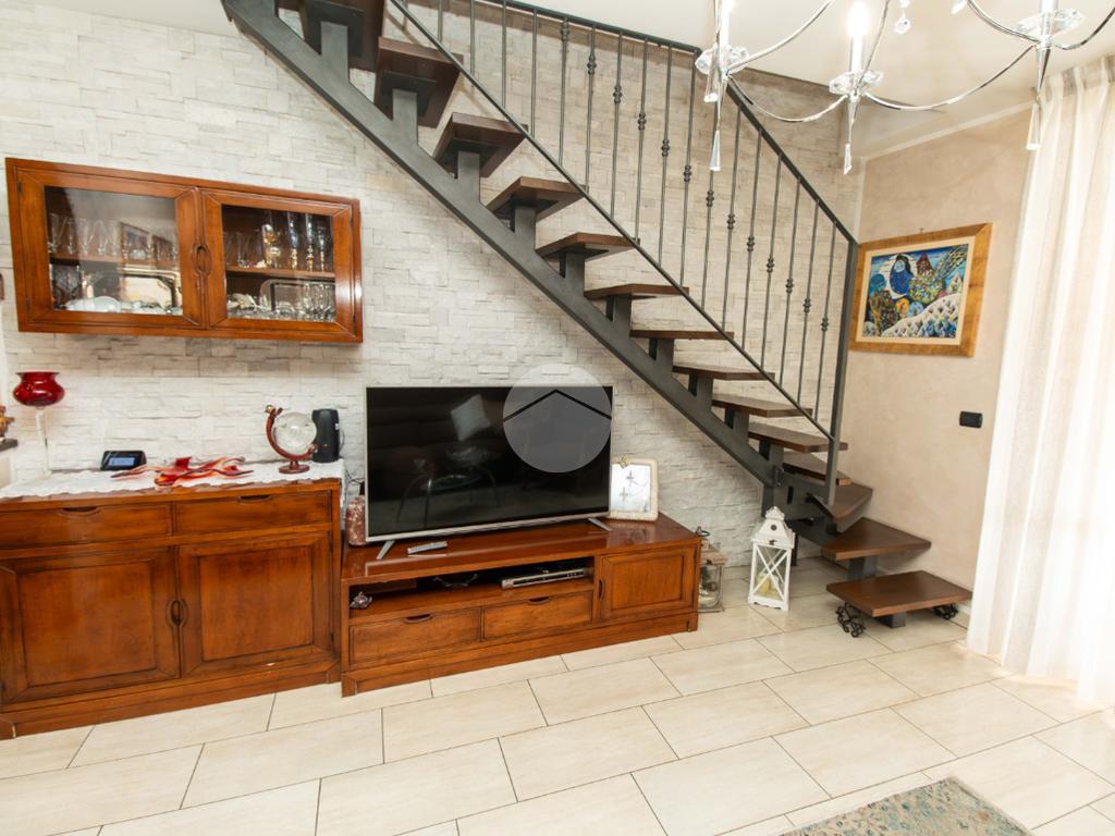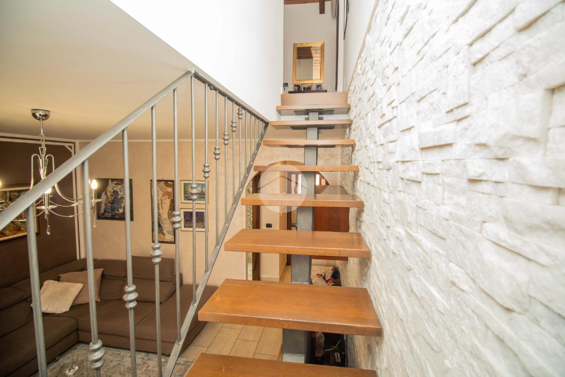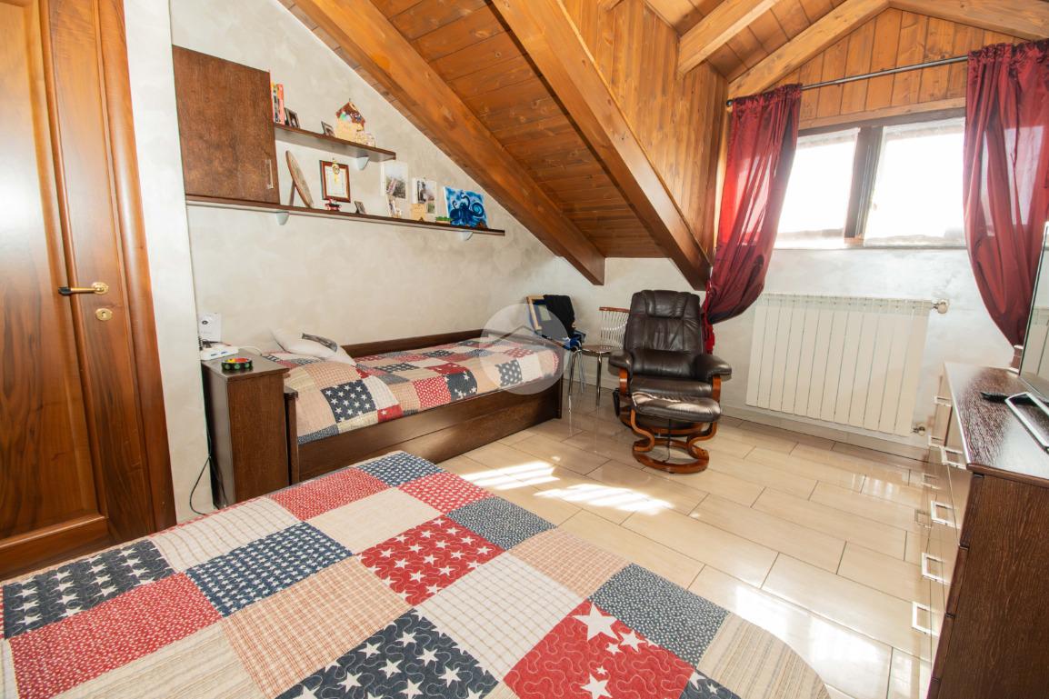 Dal soggiorno tramite comoda scala interna si ha accesso al piano superiore, in cui vi sono due ampie camere da letto, entrambe illuminate da infissi in vetrocamera in legno; e il bagno padronale, anch'esso finestrato e caratterizzato da vasca idromassaggio.
